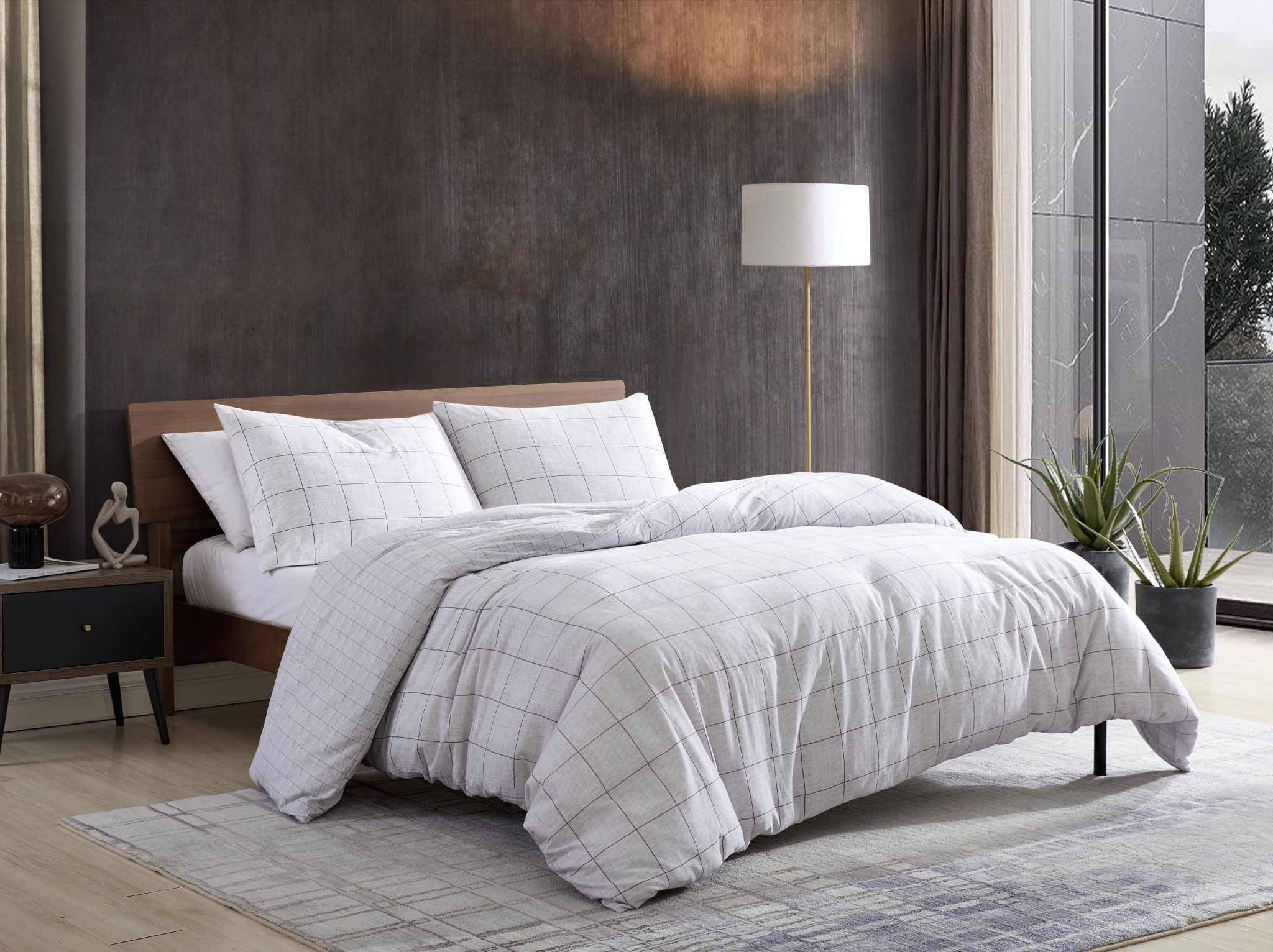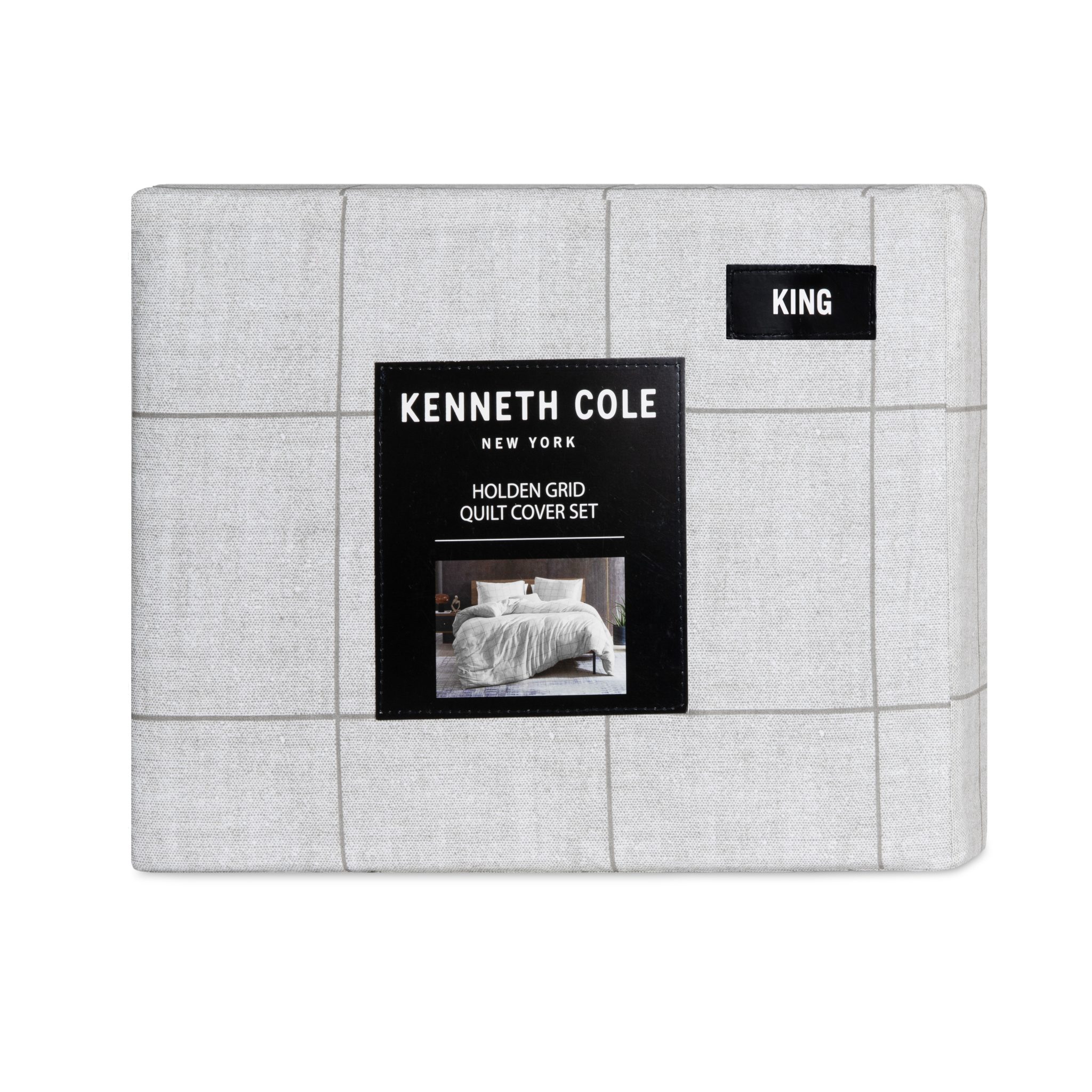 Give your bedroom a stylish makeover with the Holden Grid Quilt Cover Set from Kenneth Cole New York. This all-cotton set features a classic grey grid pattern across the face of the quilt cover and coordinating pillowcases. The textured vintage print is perfect for a modern update to your bedding collection.