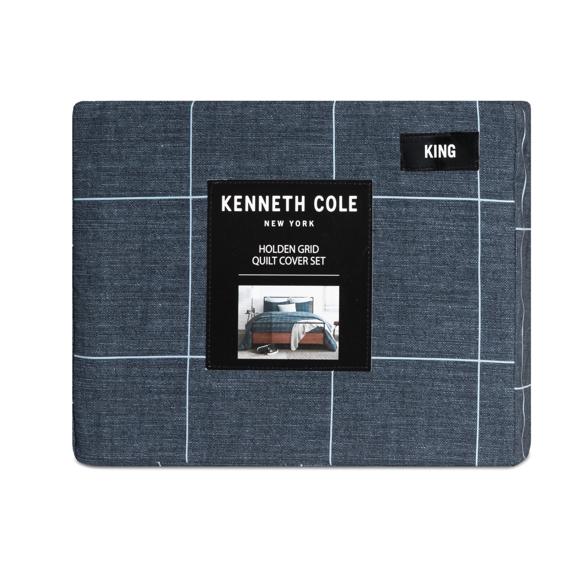 Give your bedroom a stylish makeover with the Holden Grid Quilt Cover Set from Kenneth Cole New York. This all-cotton set features a classic indigo grid pattern across the face of the quilt cover and coordinating pillowcases. The textured vintage print is perfect for a modern update to your bedding collection.