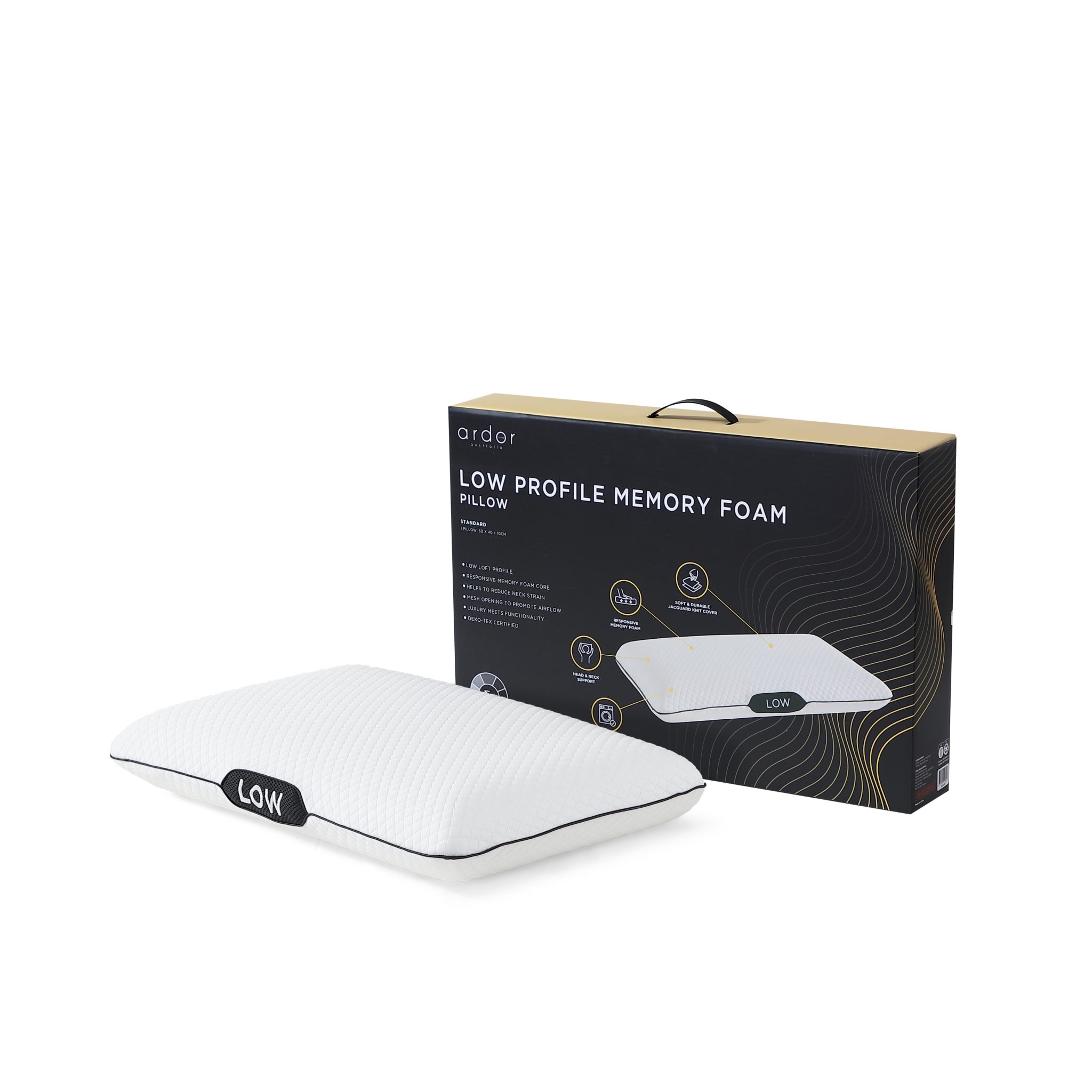 ARDOR LOW PROFILE MEMORY FOAM PILLOW IN WHITE