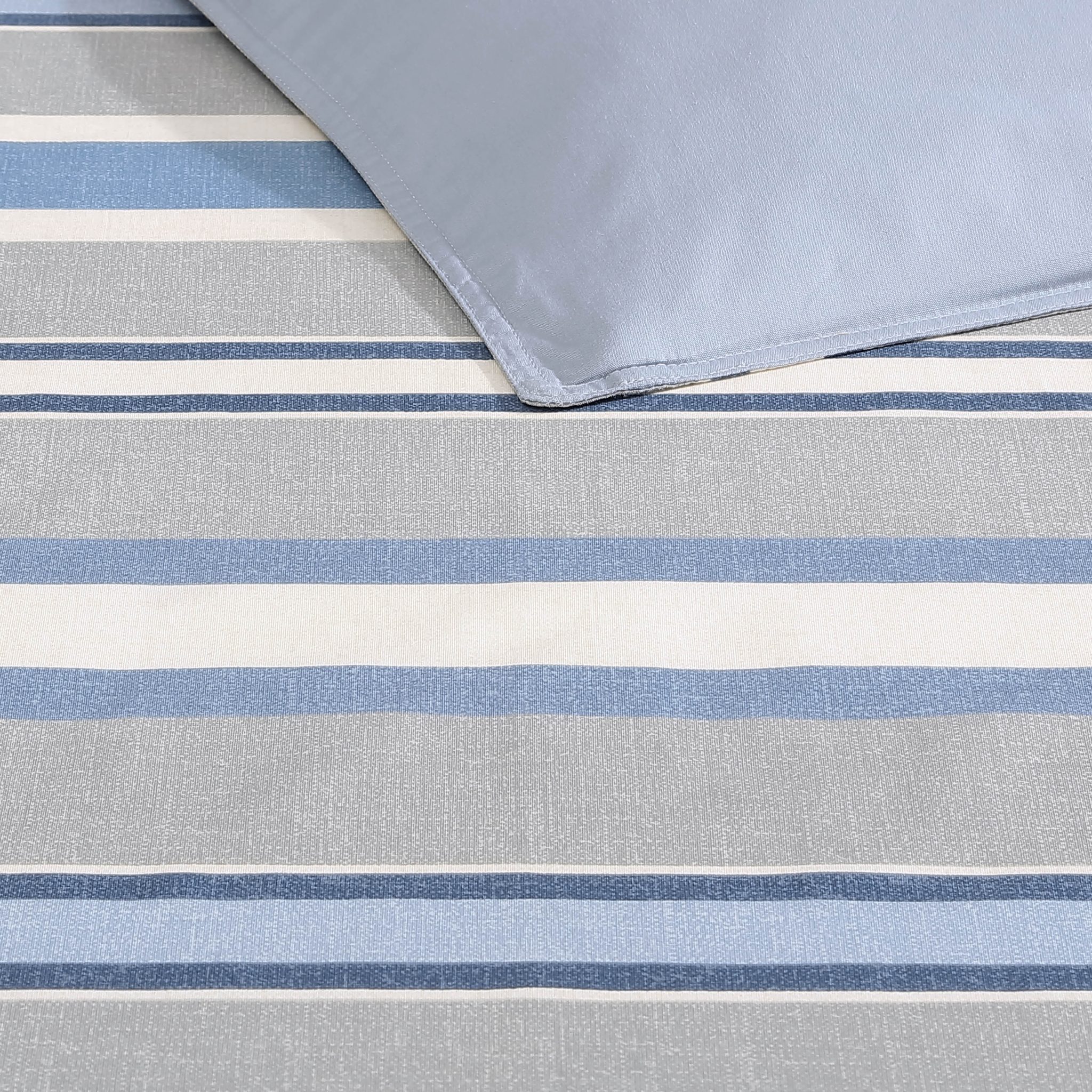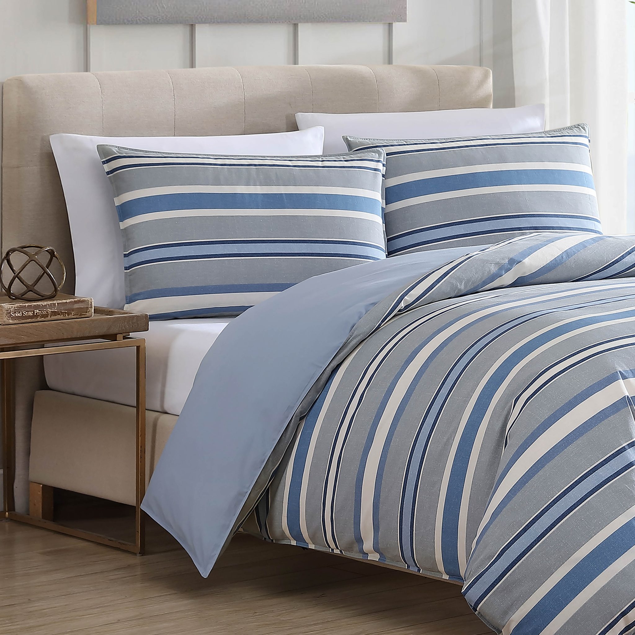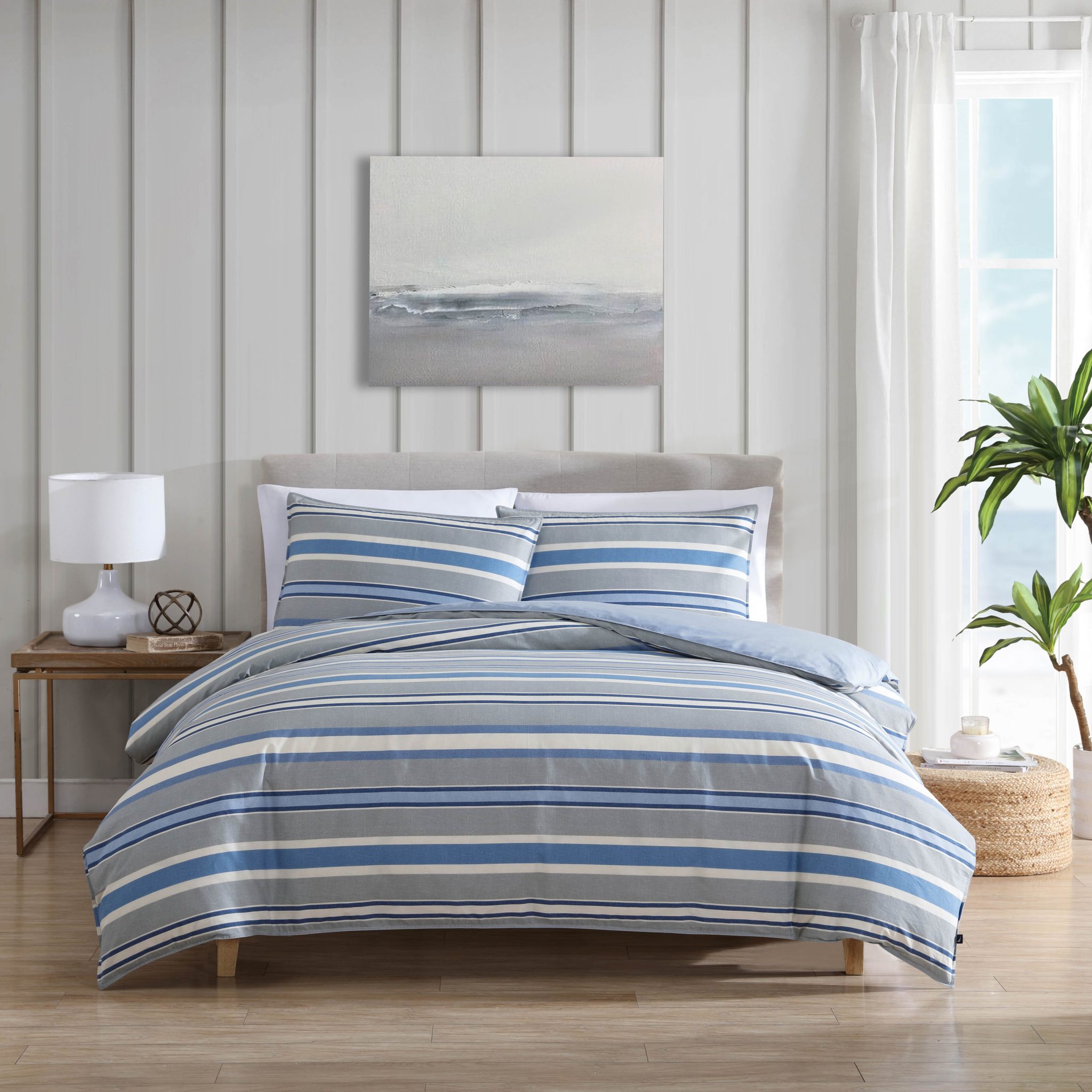 Transform your bedroom into a lakeside retreat with the handsome Nautica Sedgemoor Quilt Cover Set. The soothing bedding features yarn-dye stripes in cool grey, chambray, and royal blues, all rounded off with stylish ivory accents.
