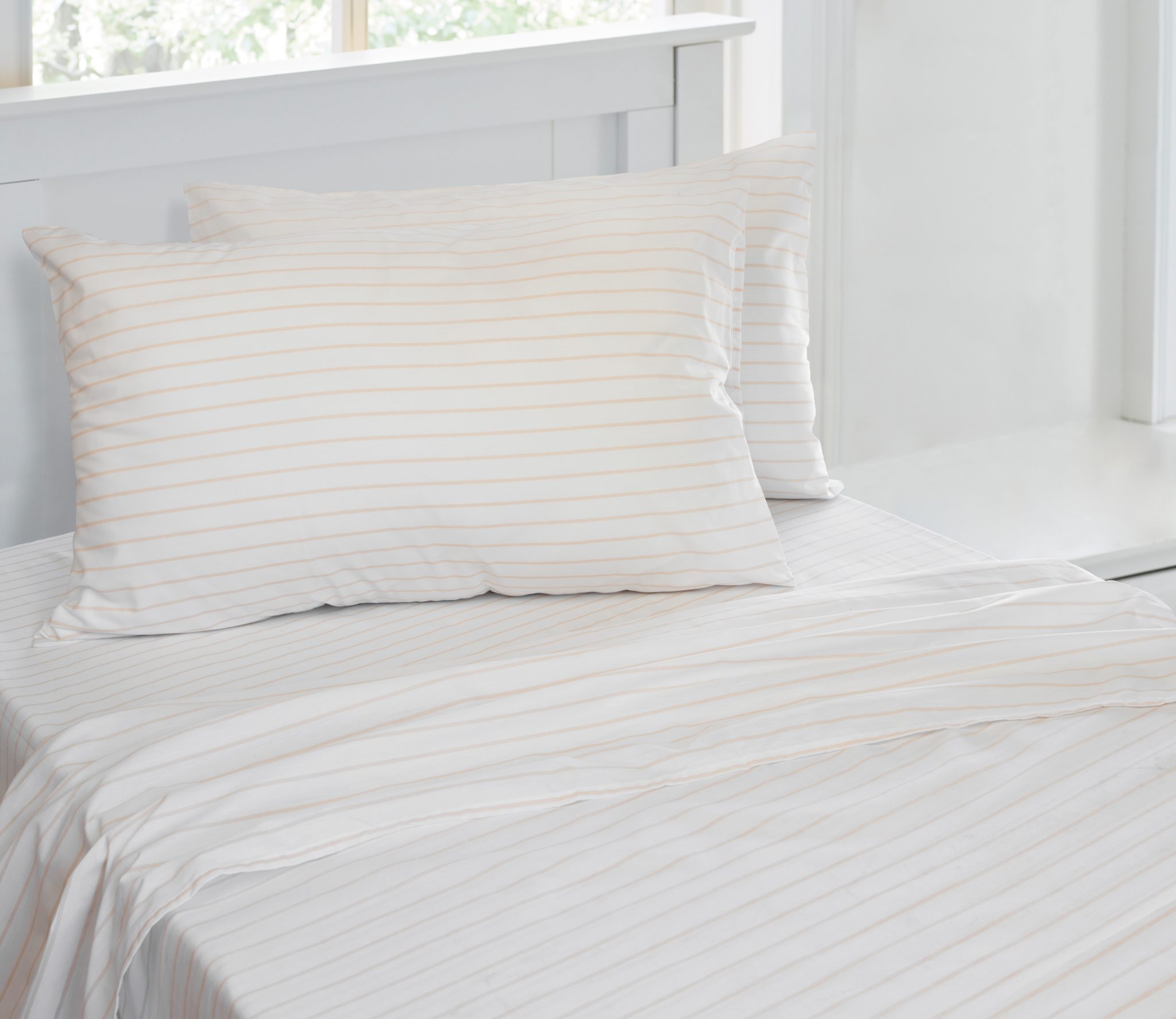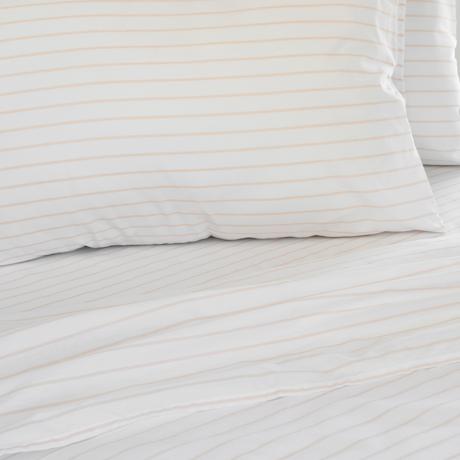 KING SINGLE: 107×203+40cm (fitted sheet); 200x265cm (flat sheet); 1x 48x74cm (pillowcase)